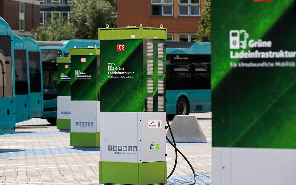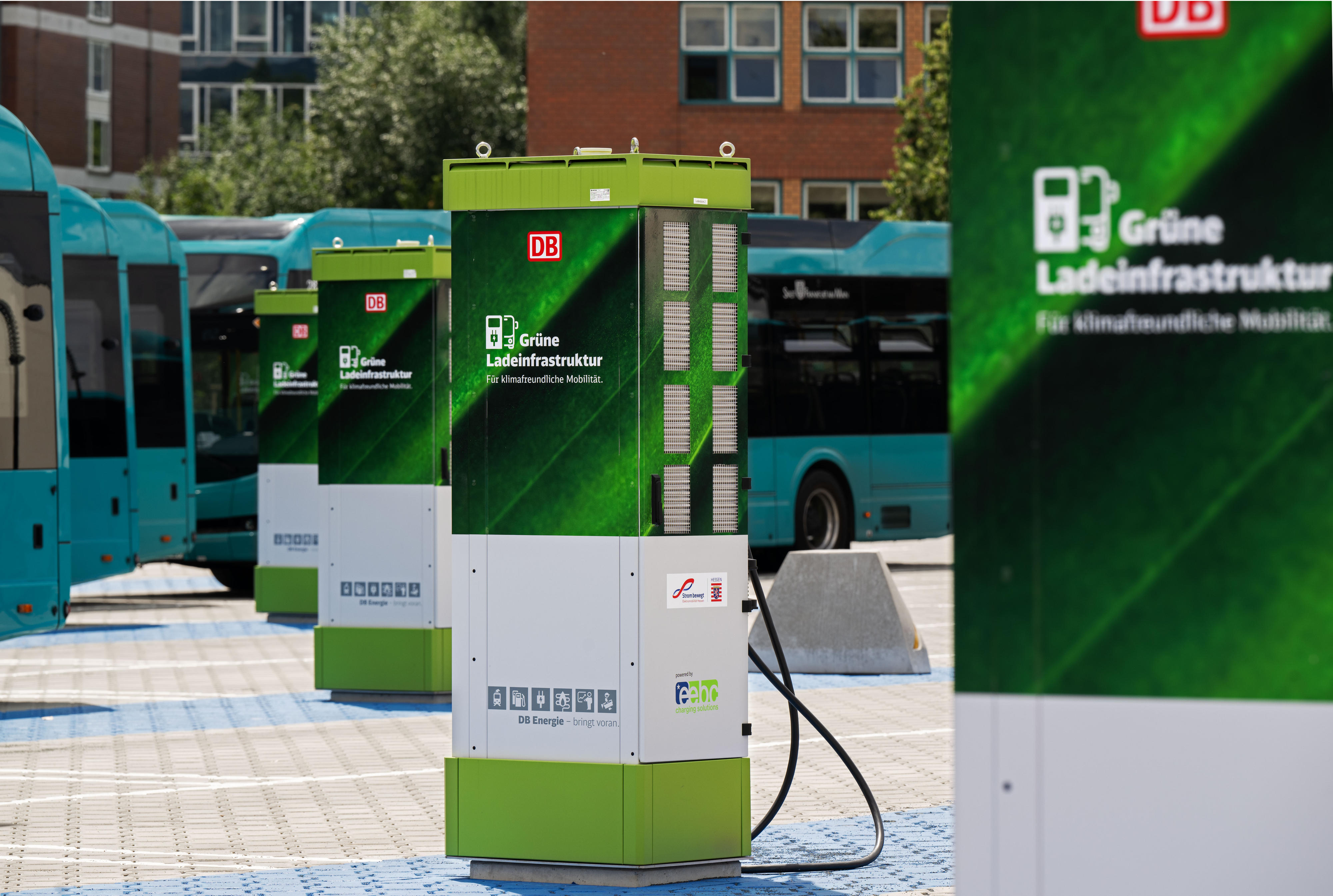 Für den Busbetriebshof im Industriepark Höchst hat DB Energie gemeinsam mit DB Regio die Ladeinfrastruktur für den Einsatz von Elektrobussen realisiert. Insgesamt stehen 20 Ladepunkte bereit, die eine zuverlässige Versorgung der Fahrzeuge mit Ökostrom ermöglichen und den nächtlichen Ladebetrieb unterstützen. Die Anlage ist auf den täglichen Linienverkehr ausgelegt und bildet die energiewirtschaftliche Grundlage für den vollelektrischen Betrieb der 27 eingesetzten Busse.